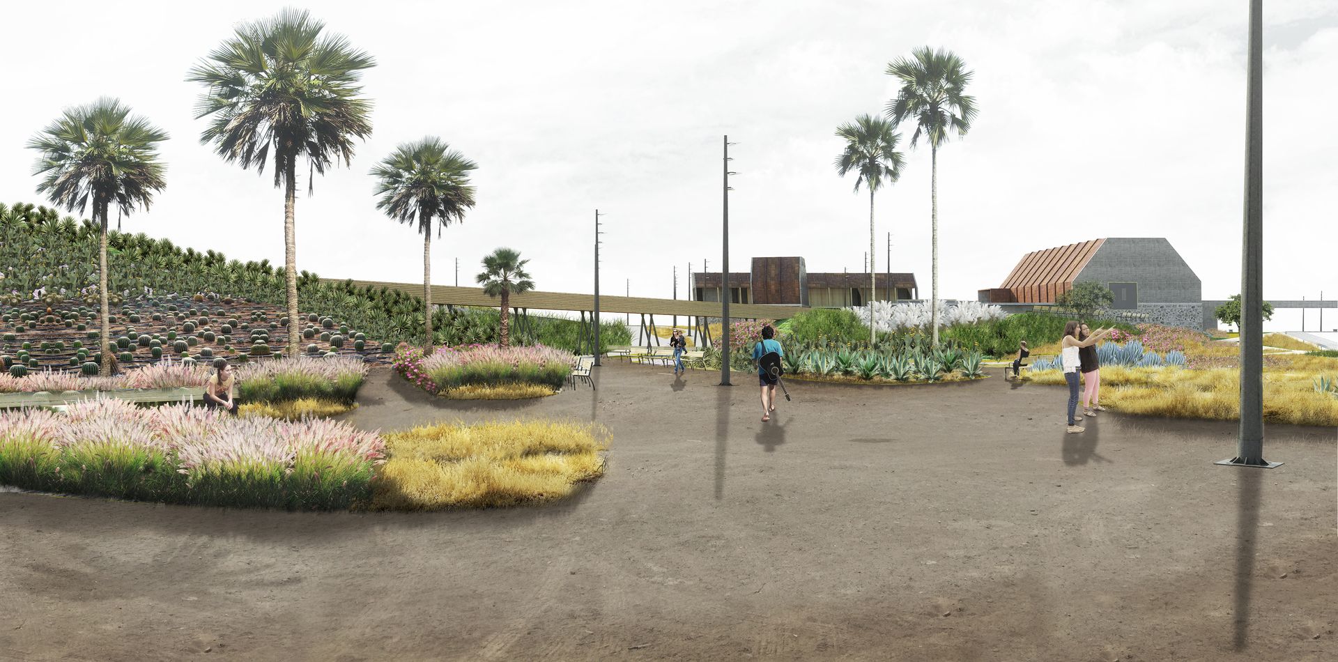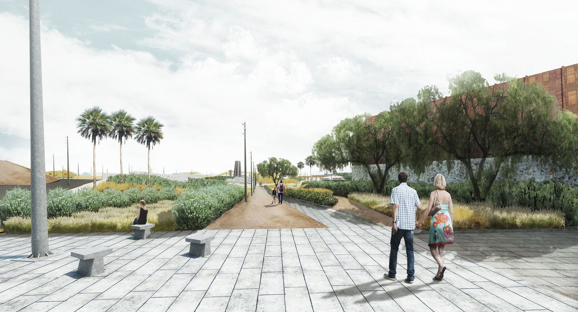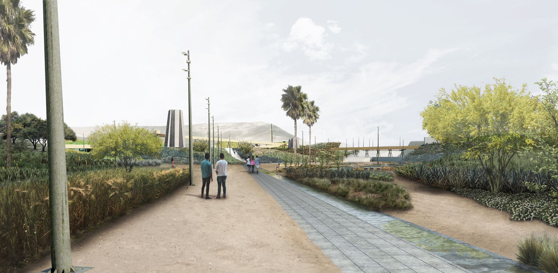 La propuesta de paisaje se concibe como un entorno desértico con dos estratos. En el estrato inferior predominan las plantas xerófilas, cactáceas y suculentas, con baja densidad, mientras que en el estrato superior se seleccionan especies arbóreas de bajo consumo de agua.