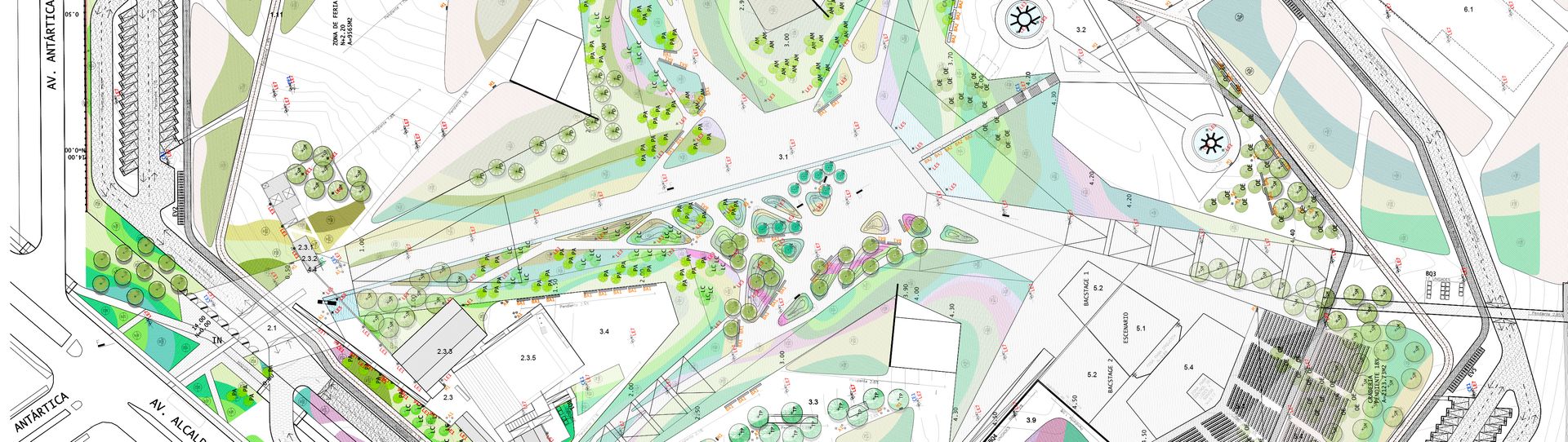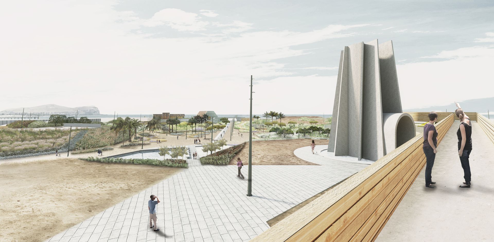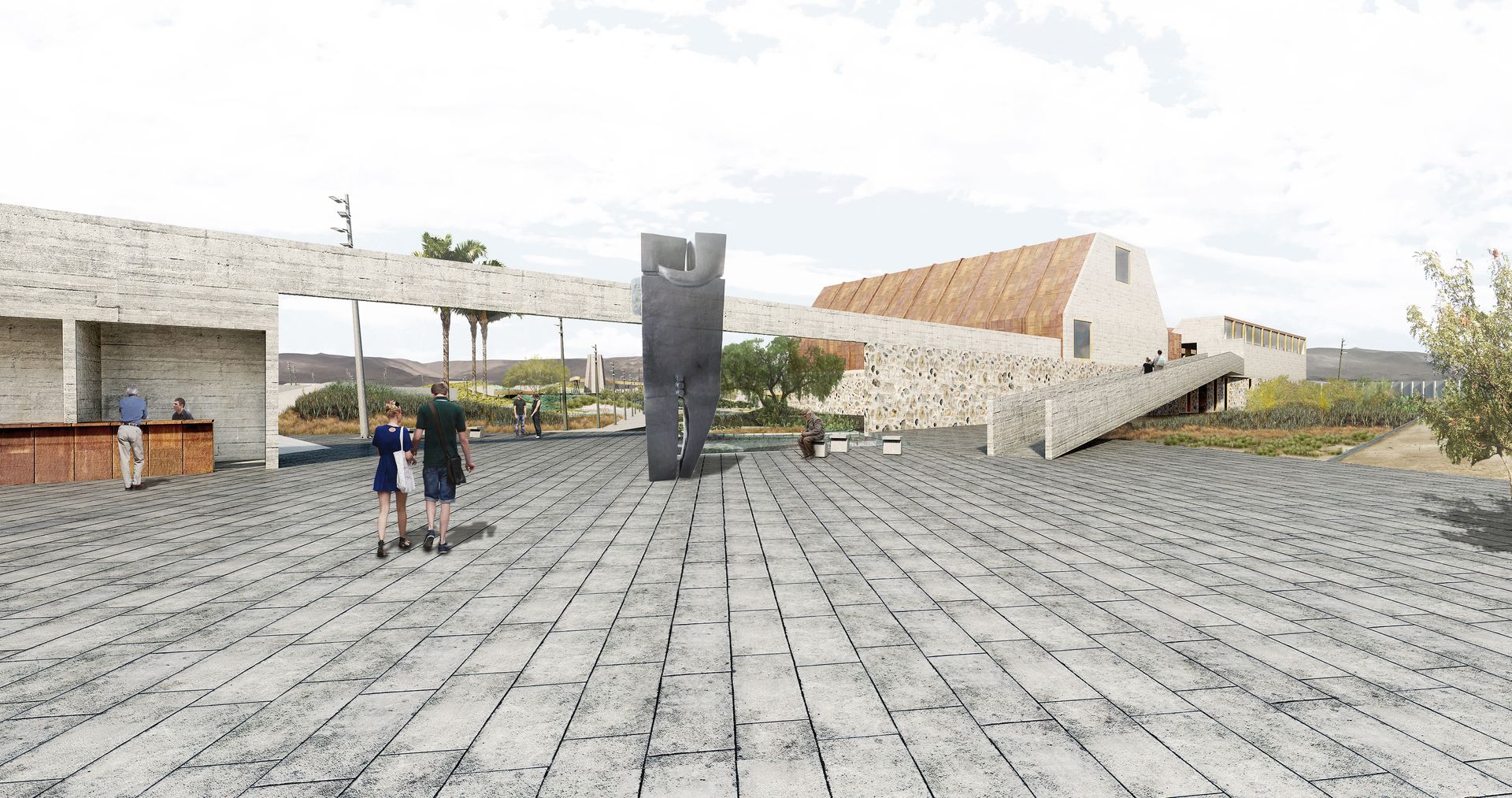 La propuesta de paisaje se concibe como un entorno desértico con dos estratos. En el estrato inferior predominan las plantas xerófilas, cactáceas y suculentas, con baja densidad, mientras que en el estrato superior se seleccionan especies arbóreas de bajo consumo de agua.