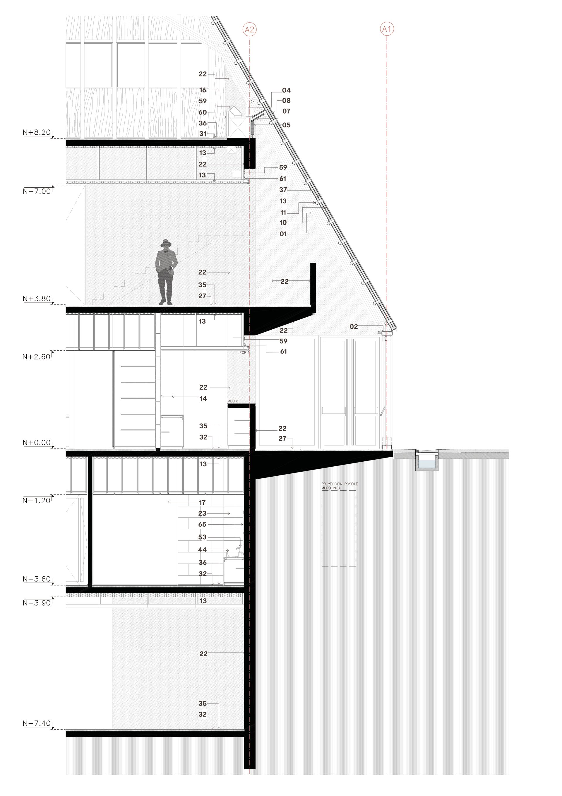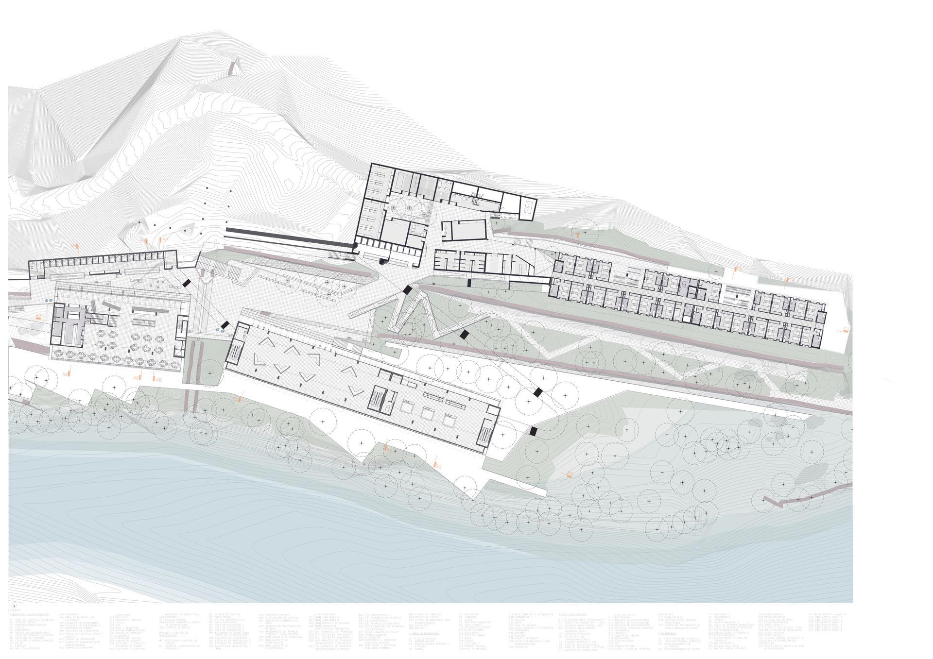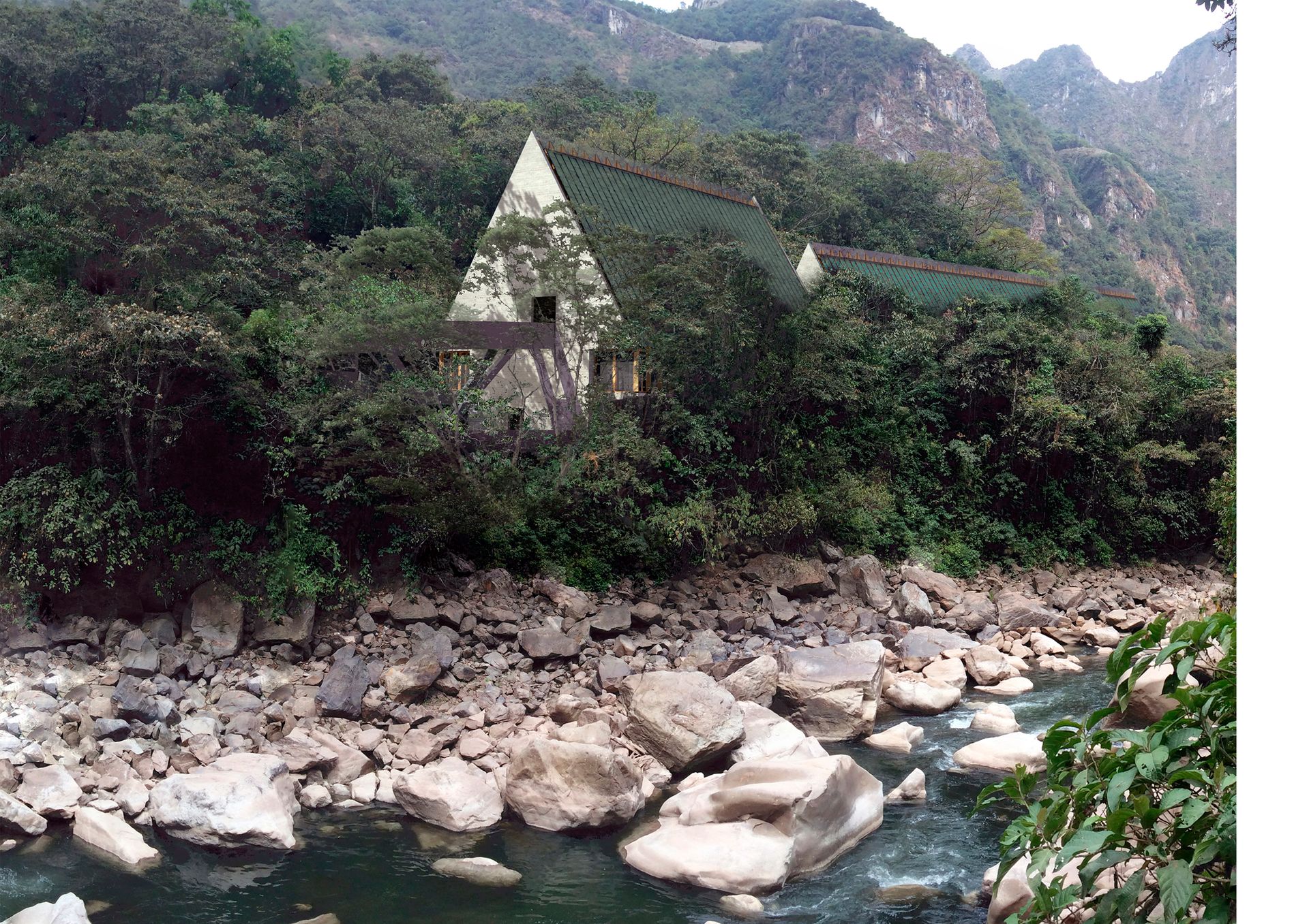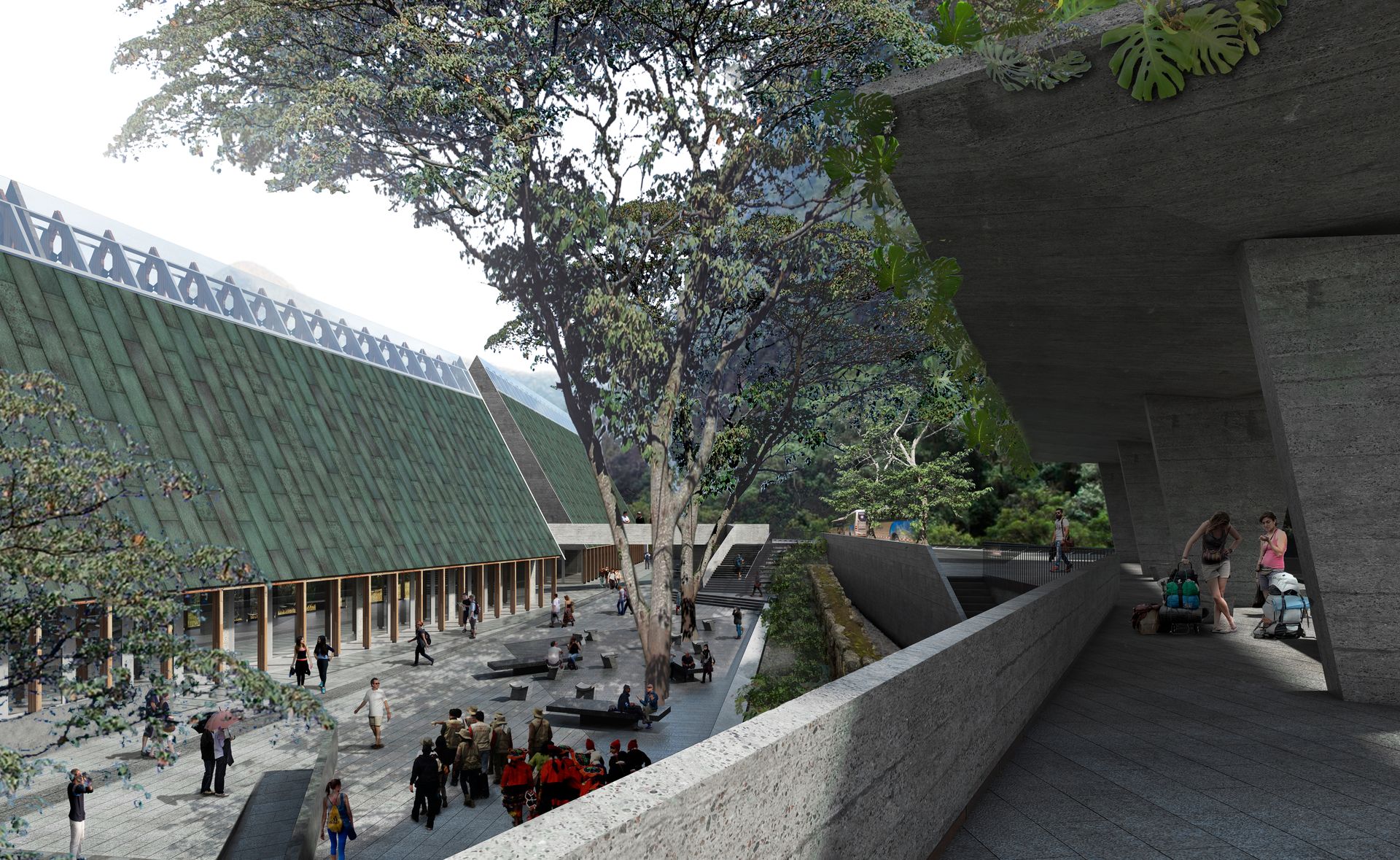 El programa arquitectónico se divide y se organiza en tres edificios principales conectados por diferentes plazas o terrazas. Este conjunto de tres estructuras mantiene la proporción observada en los hastiales inca de la Llaqta, techos que se insertan en el paisaje, abrazados por la geografía y la vegetación.