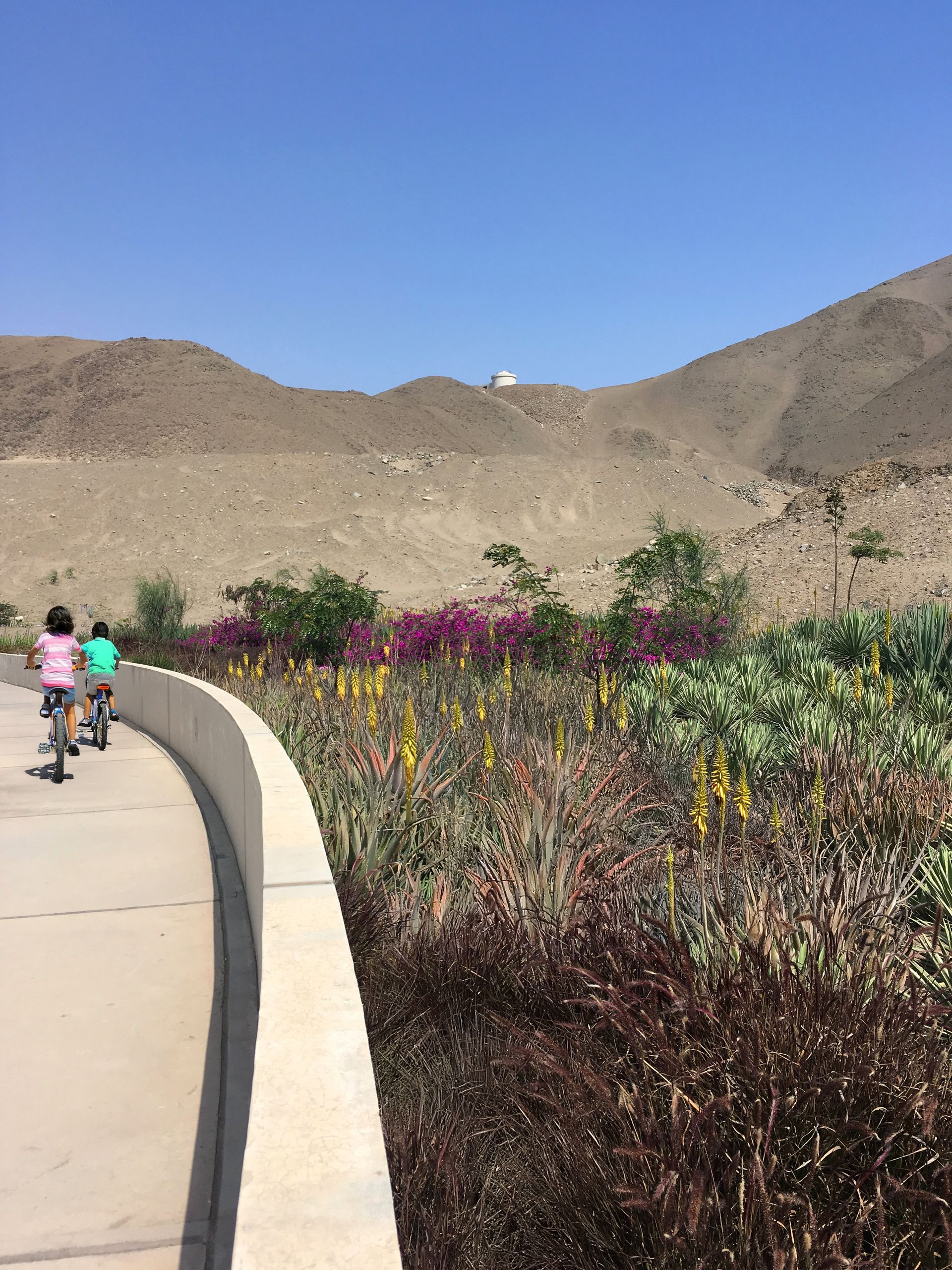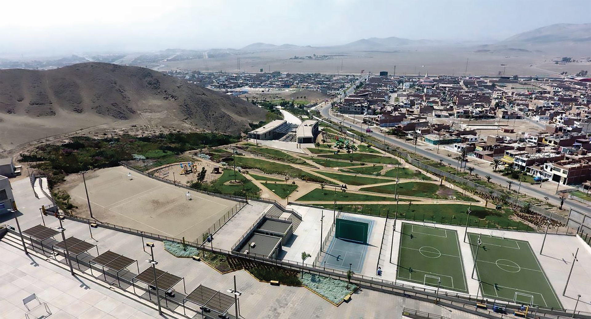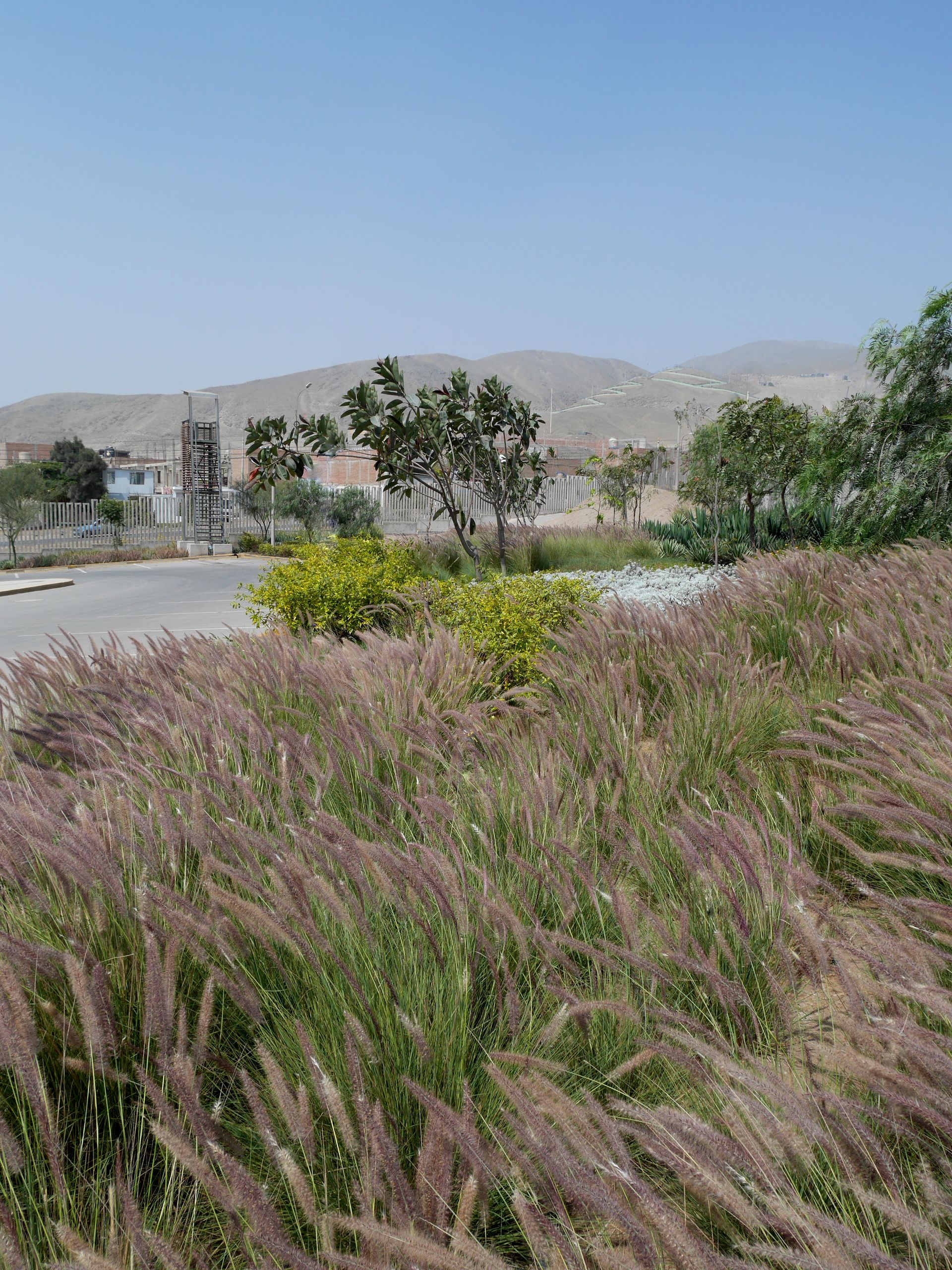 Se abordó el desafío, aparentemente contradictorio, de crear un parque urbano en pleno desierto mediante estrategias que equilibran funcionalidad, sostenibilidad y adaptación al entorno. La reducción de áreas de césped responde a la necesidad de minimizar el consumo de agua potable y reducir los costos de mantenimiento, mientras que los cubresuelos seleccionados, de bajo mantenimiento y escasa demanda hídrica, favorecen la biodiversidad local y requieren menos intervenciones.