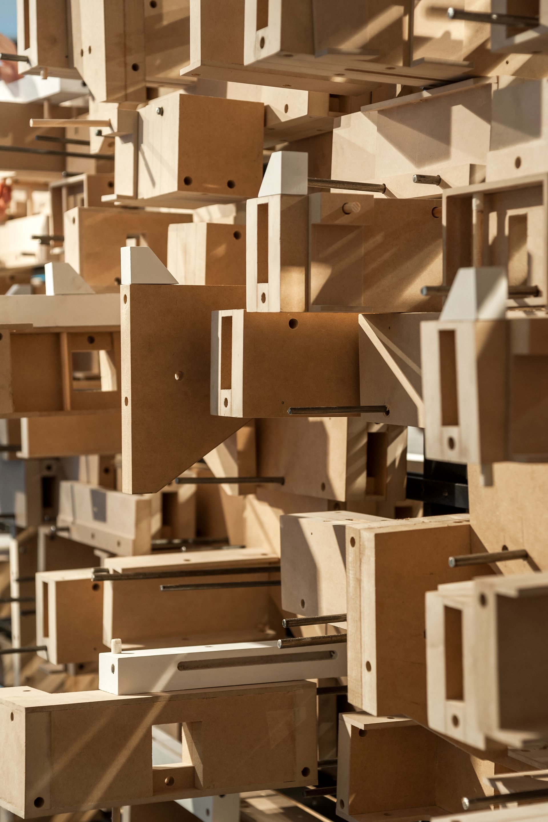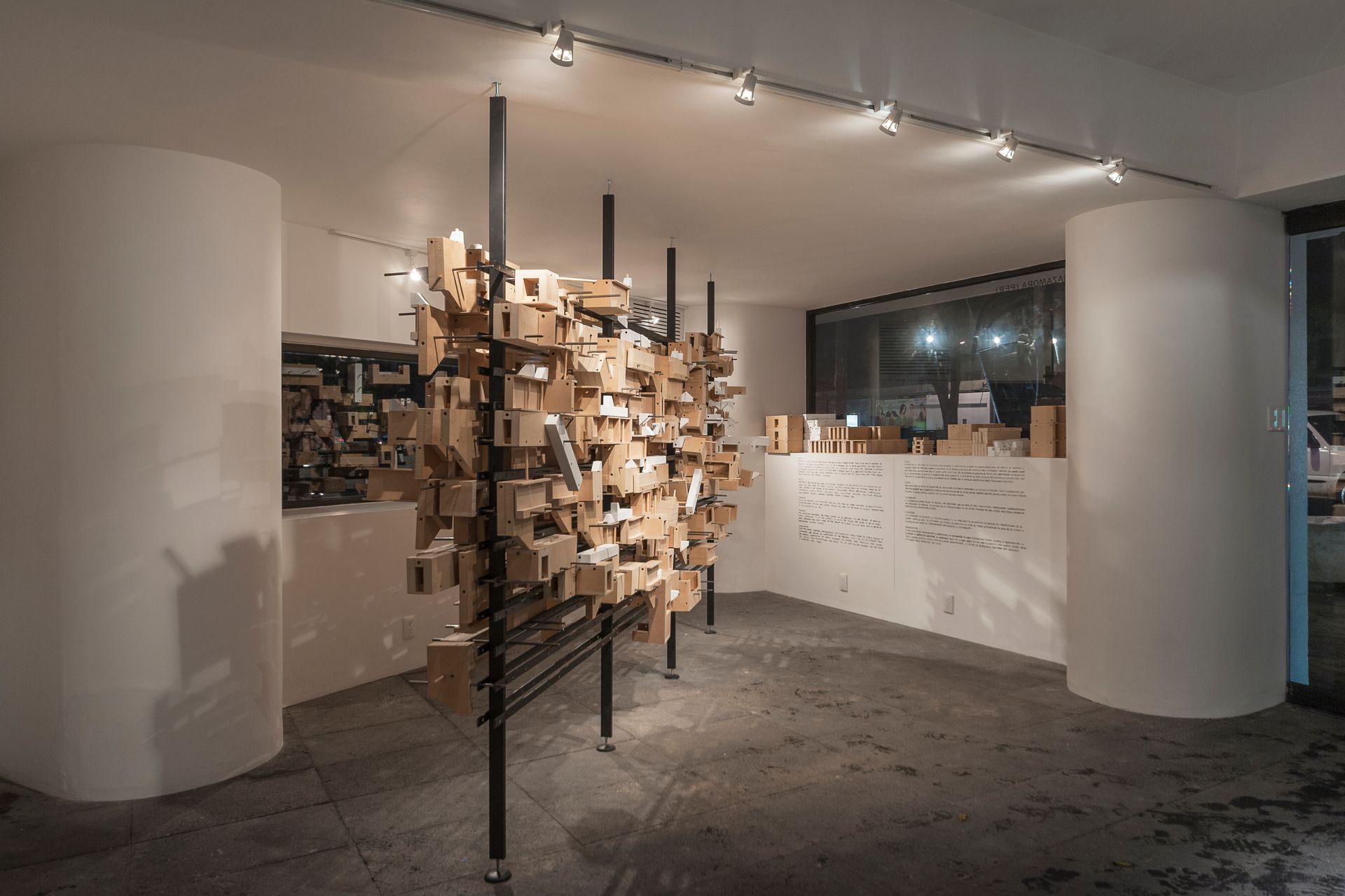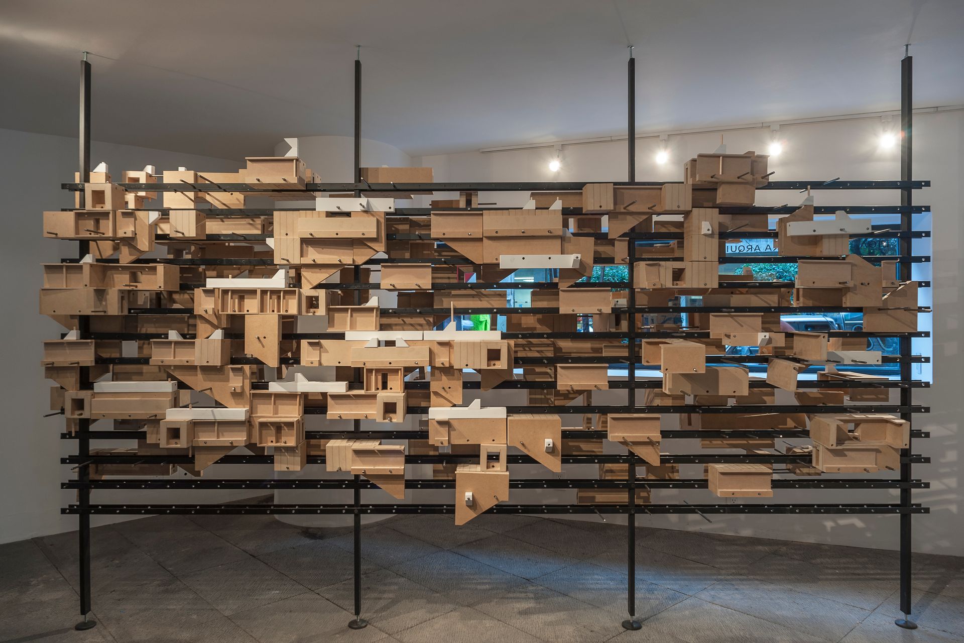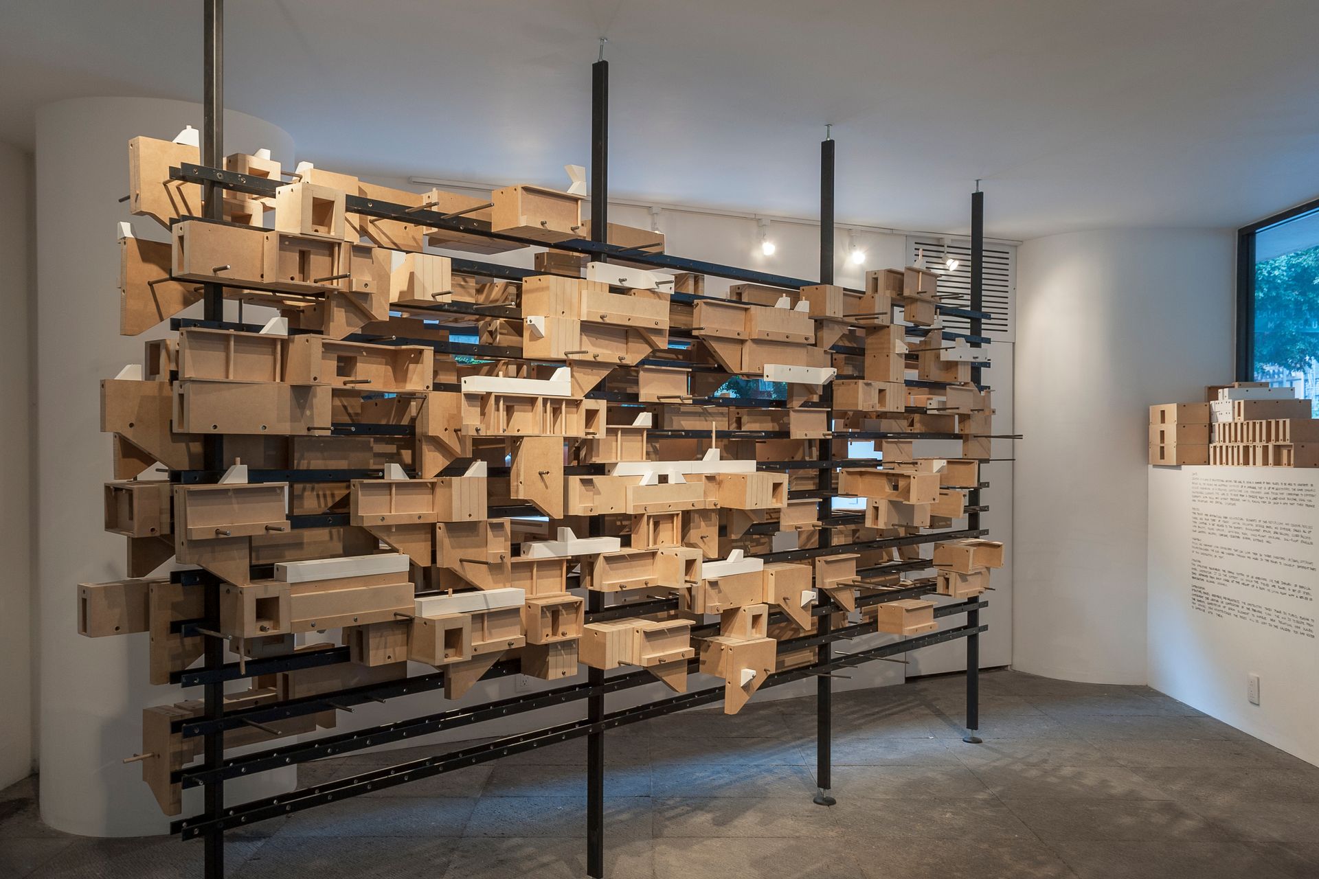 La instalación Gramática del estudio peruano Llonazamora es una invitación a reorganizar una colección de elementos de la arquitectura republicana de Lima. Reproduce en madera una selección de arquetipos ingeniosos en su concepción e inteligentes en el aspecto constructivo, que van desde cuartos hasta escaleras y balcones. Llonazamora disecciona edificios limeños en sus elementos básicos, que posteriormente son reubicados sobre una estructura metálica esbelta, con el objetivo de explorar las combinaciones entre piezas, formando nuevas conexiones y espacialidades.